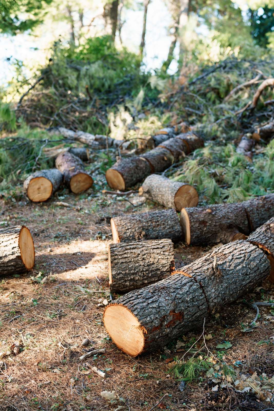 Freshly Cut Trees In The Forest On The Side Of A Forest Road A Royalty Free Stock Photo From Photocase